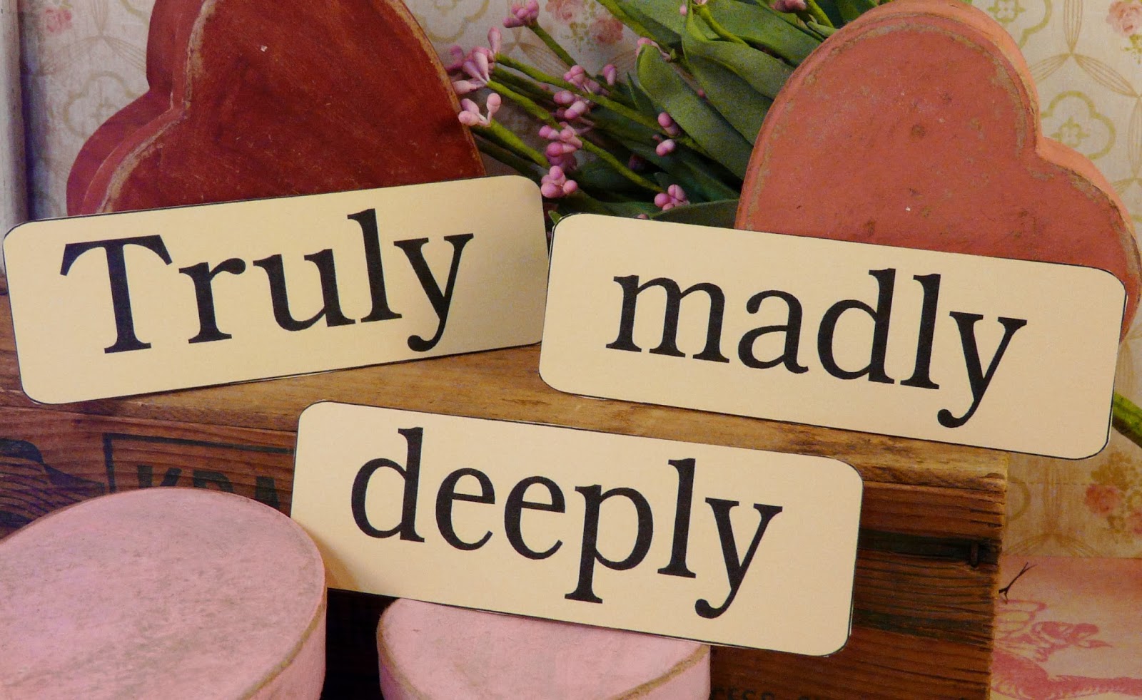 The smaller cards are: Truly madly deeply, kiss me, love conquers all.
